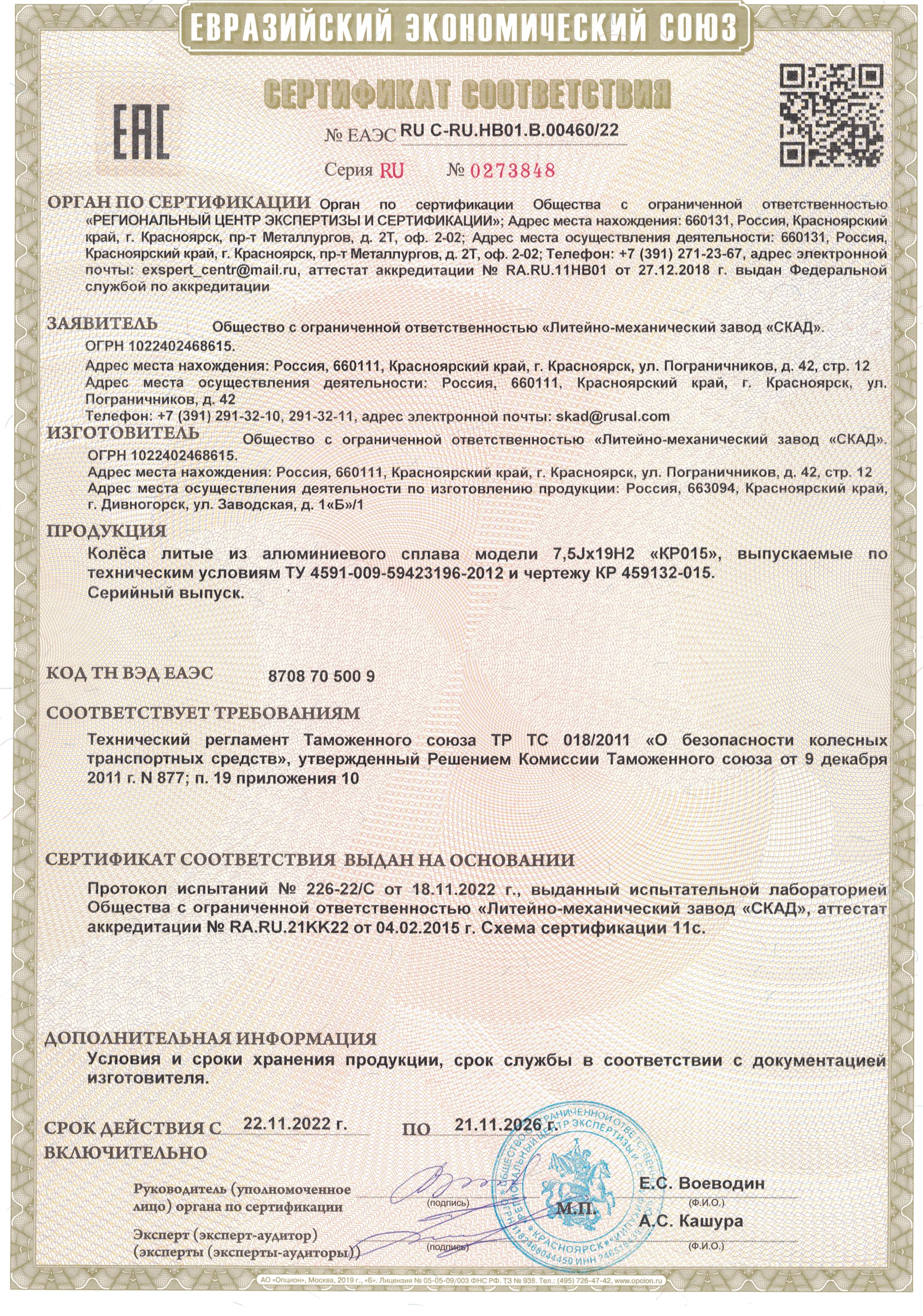 Приобретайте диски Premium Series КР015 (19_Sorento/Santa Fe) 7.500xR19 5x114.3 DIA67.1 ET49.5 напрямую от производителя из Сибири. Все представленные в ассортименте диски сертифицированы.