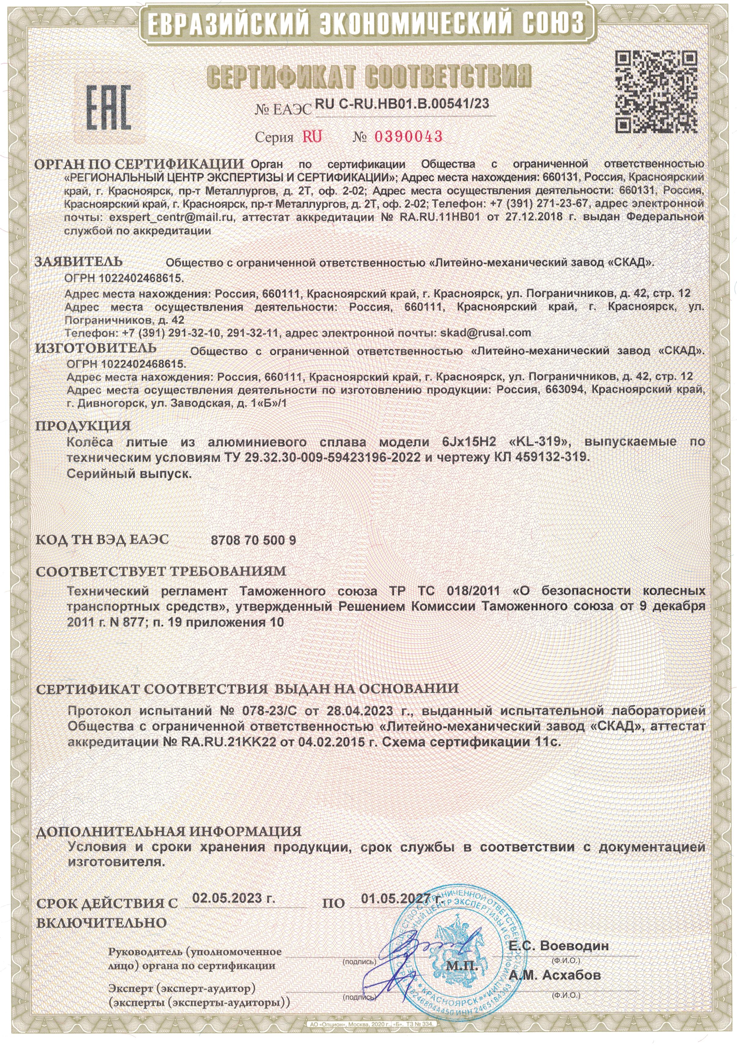 Приобретайте диски SKAD Original KL-319 (15_Rio II) 6.000xR15 4x100 DIA54.1 ET46 напрямую от производителя из Сибири. Все представленные в ассортименте диски сертифицированы.