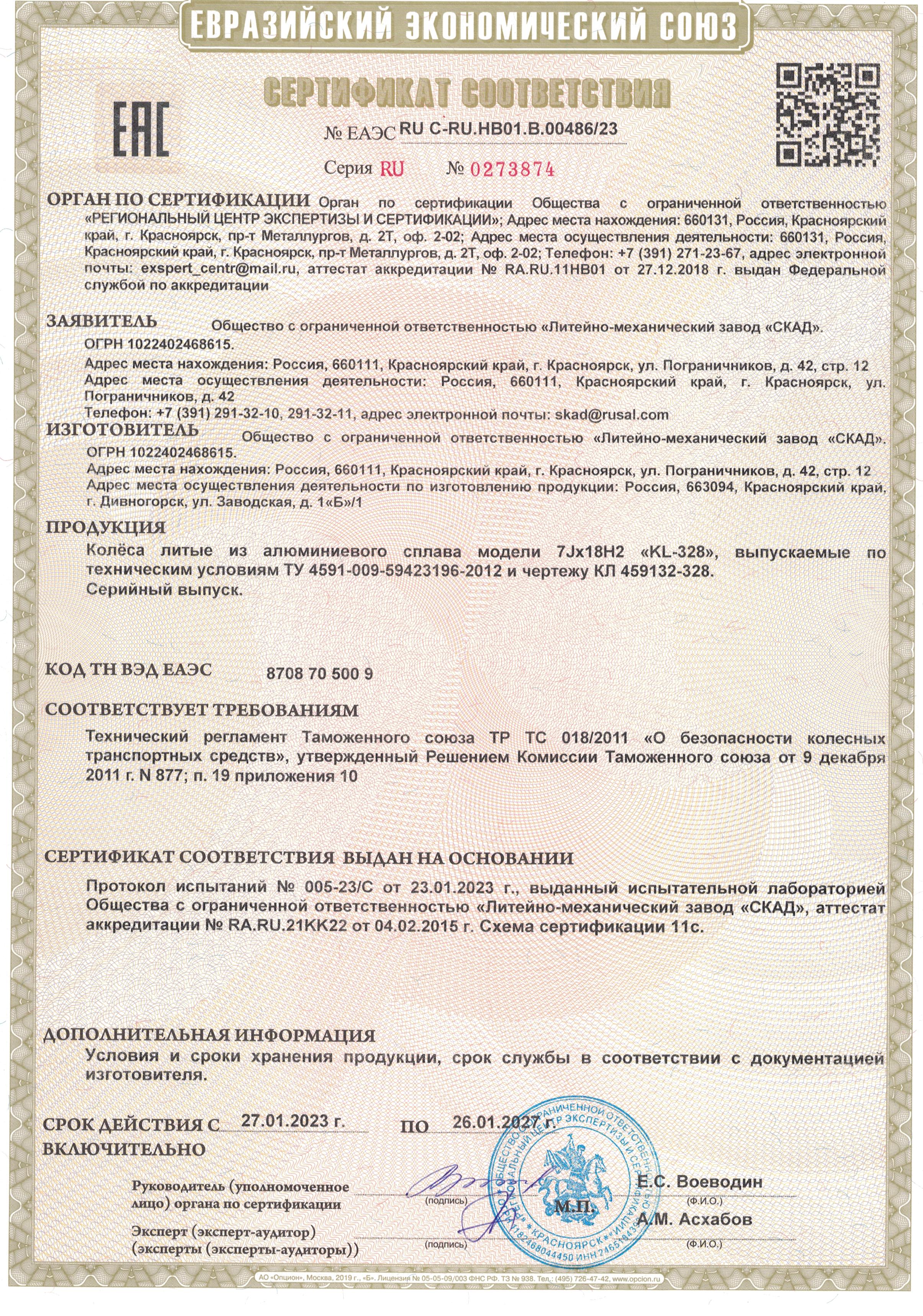Приобретайте диски SKAD Original KL-328 (18_Haval H3) 7.000xR18 5x114.3 DIA66.6 ET34 напрямую от производителя из Сибири. Все представленные в ассортименте диски сертифицированы.