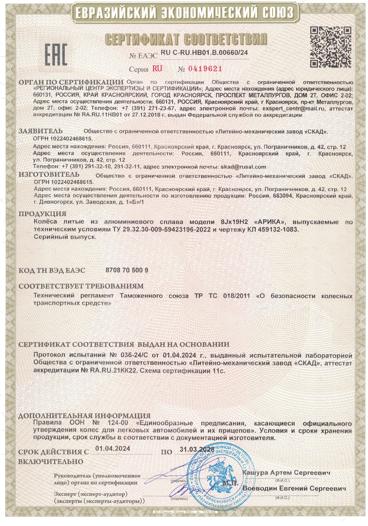 Приобретайте диски SKAD АРИКА 8.000xR19 5x112 DIA66.6 ET38 напрямую от производителя из Сибири. Все представленные в ассортименте диски сертифицированы.