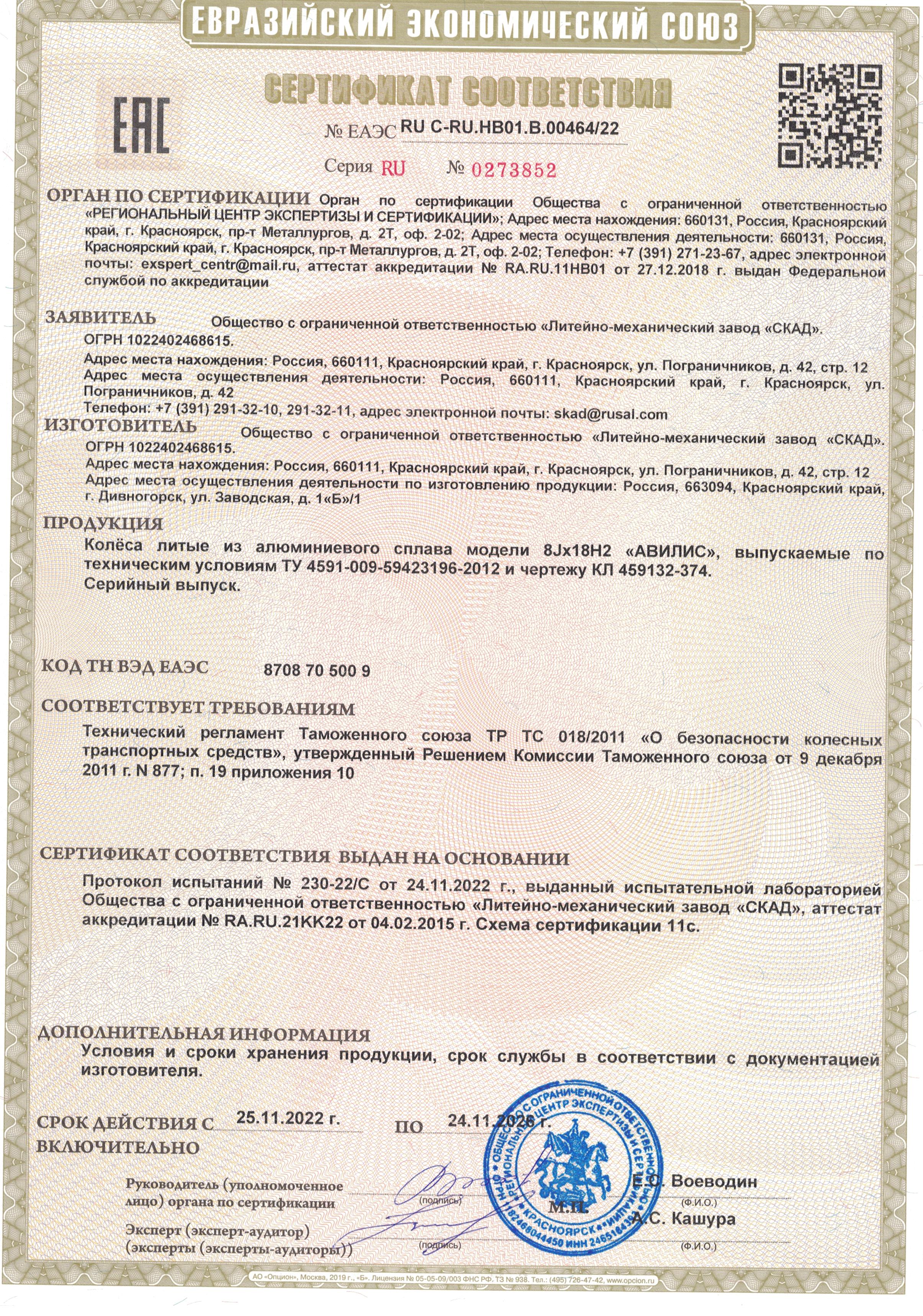 Приобретайте диски SKAD АВИЛИС 8.000xR18 6x114.3 DIA67.1 ET46 напрямую от производителя из Сибири. Все представленные в ассортименте диски сертифицированы.