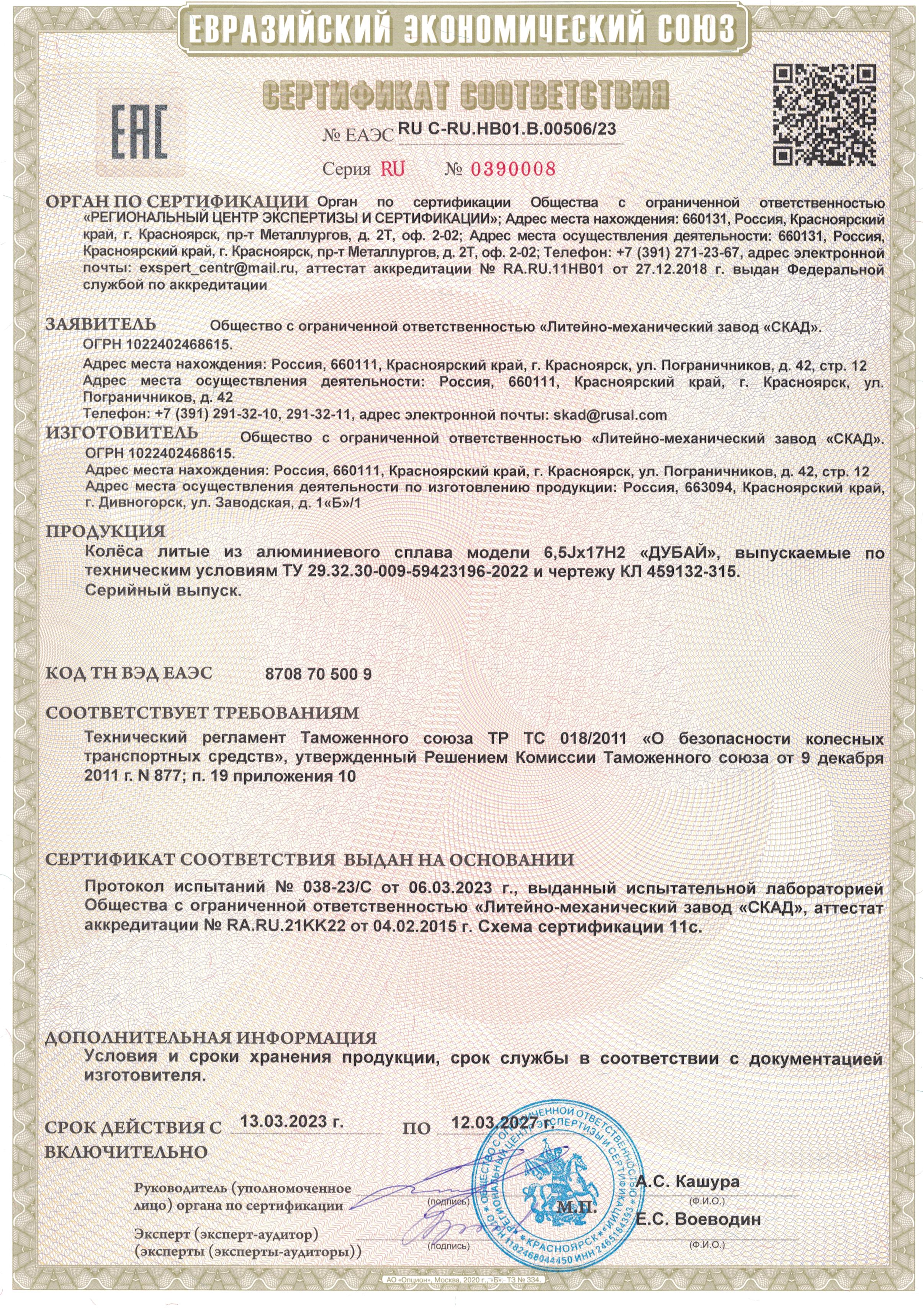 Приобретайте диски SKAD ДУБАЙ 6.500xR17 5x114.3 DIA67.1 ET45 напрямую от производителя из Сибири. Все представленные в ассортименте диски сертифицированы.