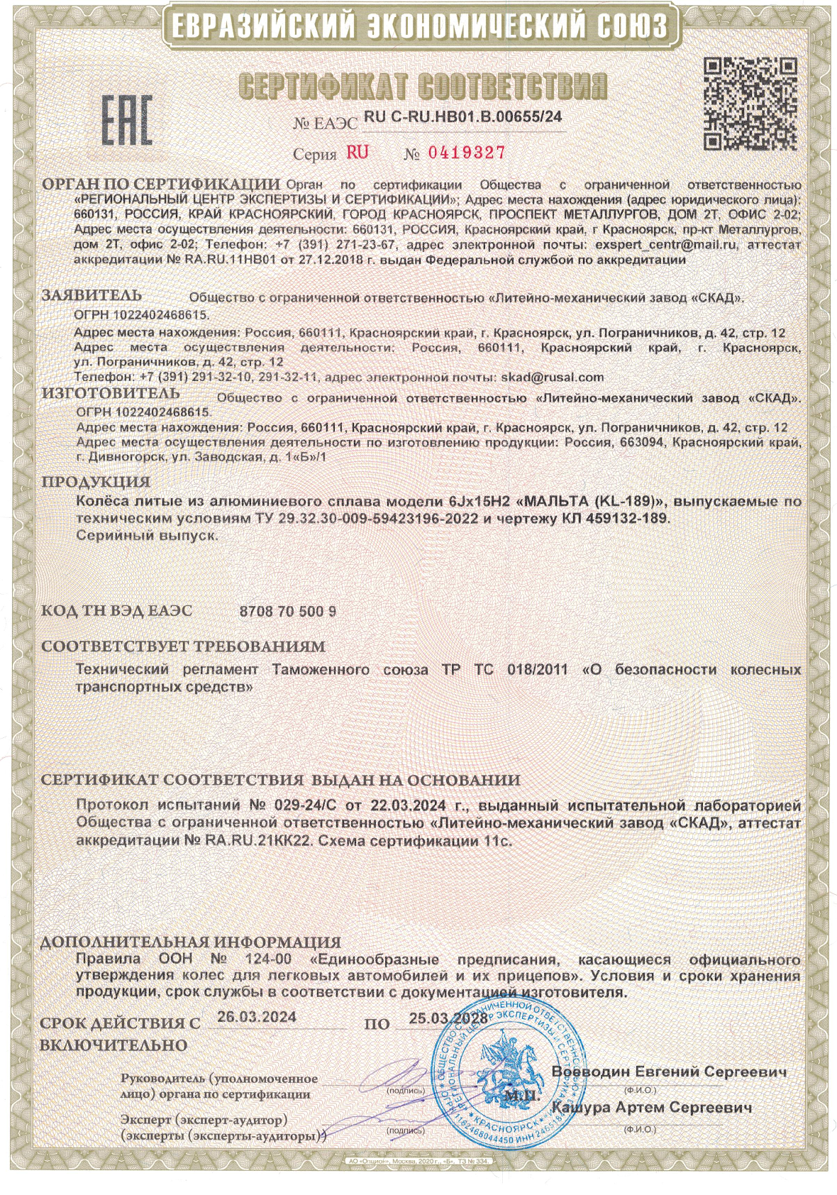 Приобретайте диски SKAD МАЛЬТА 6.000xR15 4x100 DIA60.1 ET50 напрямую от производителя из Сибири. Все представленные в ассортименте диски сертифицированы.
