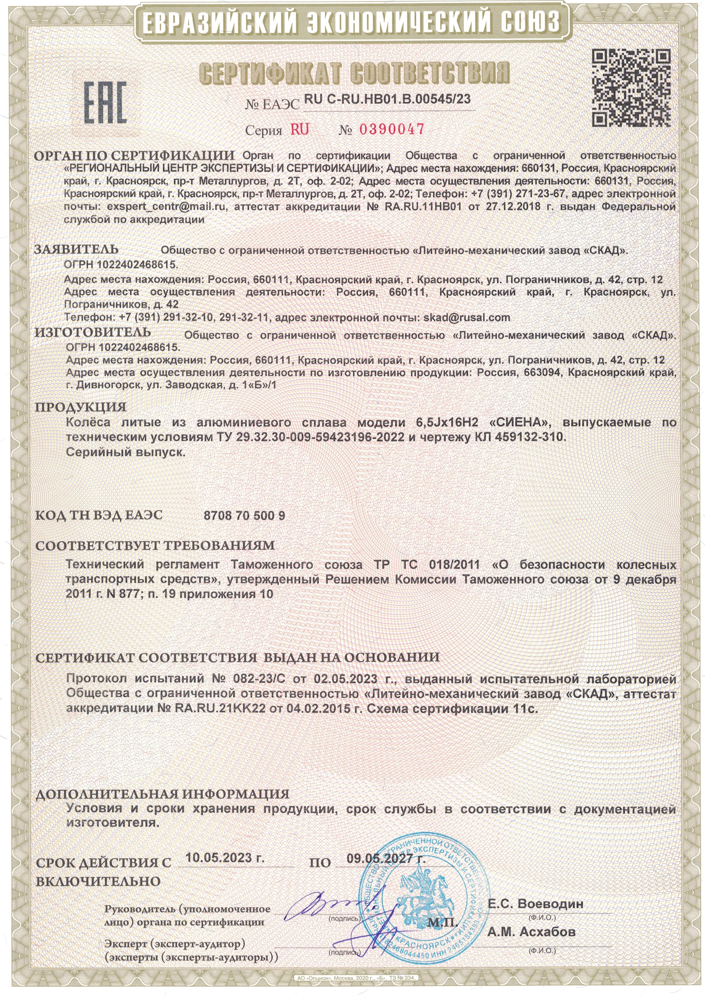 Приобретайте диски SKAD СИЕНА 6.500xR16 5x114.3 DIA67.1 ET46 напрямую от производителя из Сибири. Все представленные в ассортименте диски сертифицированы.