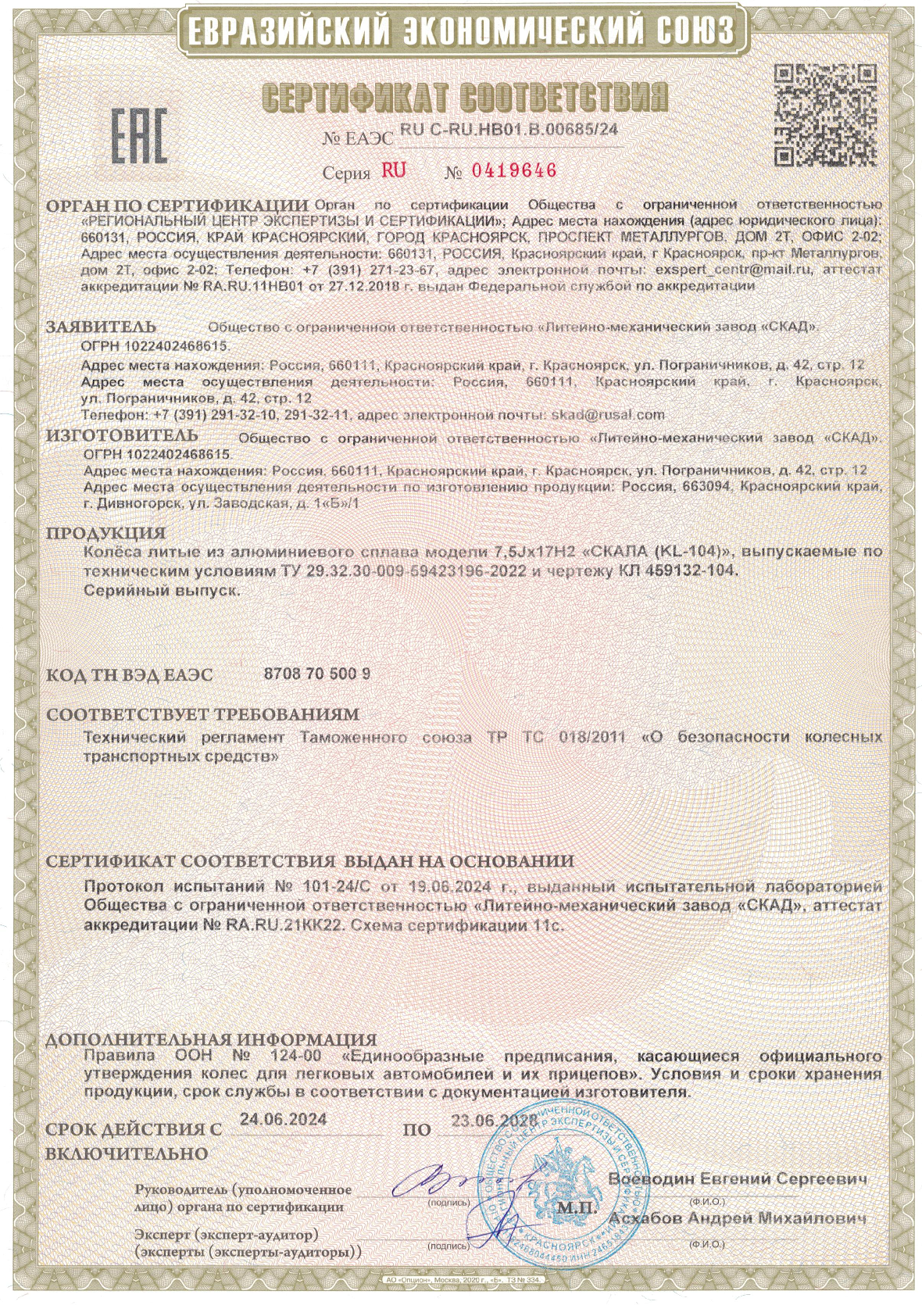 Приобретайте диски SKAD СКАЛА 7.500xR17 6x139.7 DIA106.2 ET30 напрямую от производителя из Сибири. Все представленные в ассортименте диски сертифицированы.