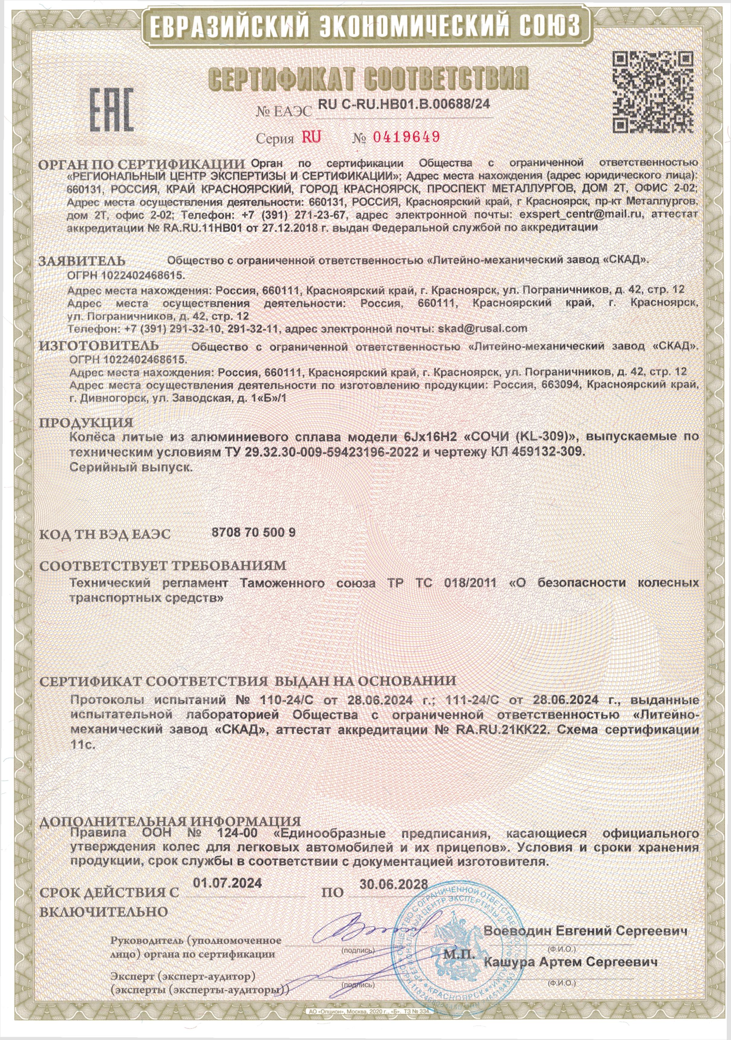Приобретайте диски SKAD СОЧИ 6.000xR16 5x114.3 DIA67.1 ET46 напрямую от производителя из Сибири. Все представленные в ассортименте диски сертифицированы.