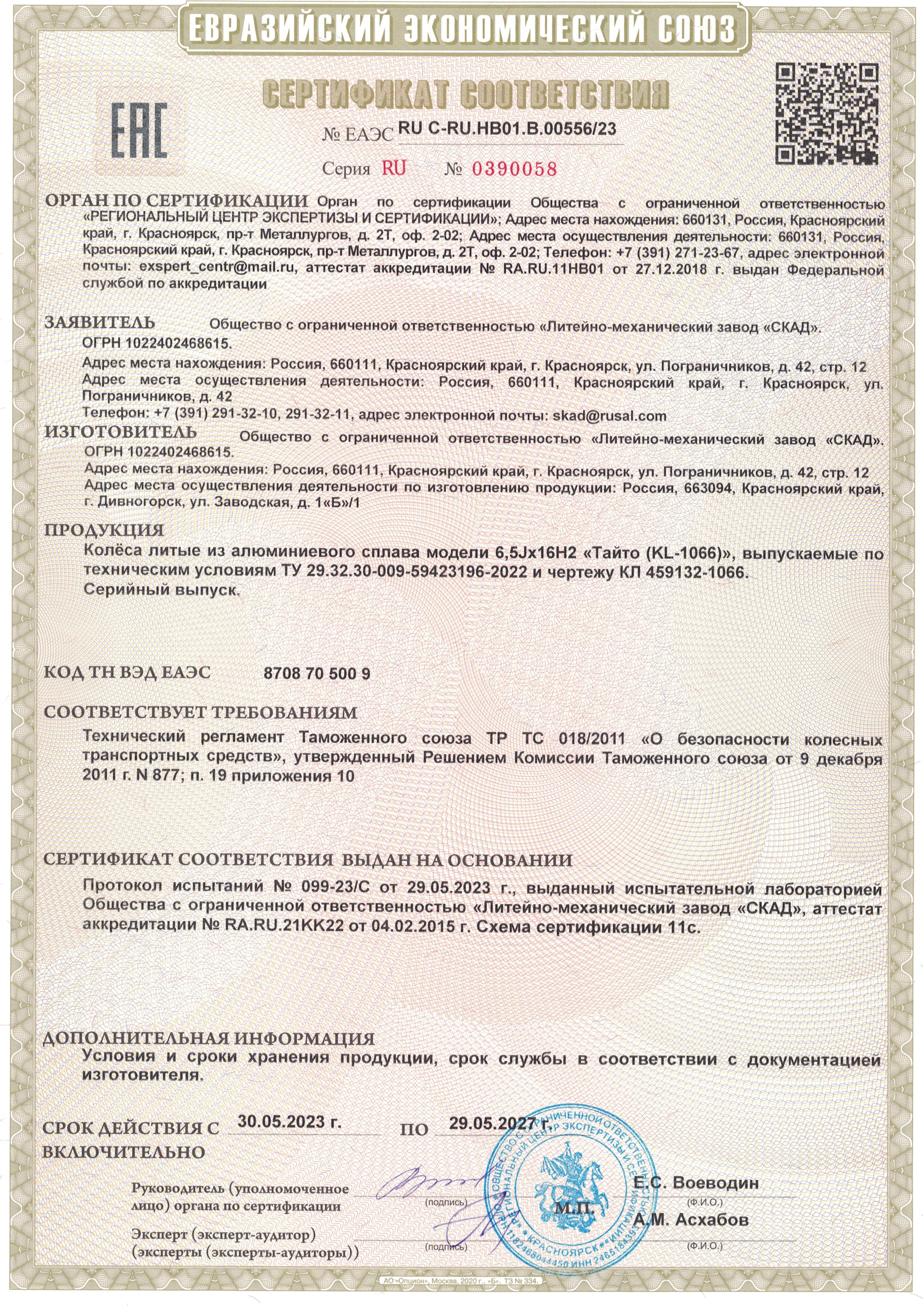 Приобретайте диски SKAD ТАЙТО 6.500xR16 5x112 DIA57.1 ET42 напрямую от производителя из Сибири. Все представленные в ассортименте диски сертифицированы.