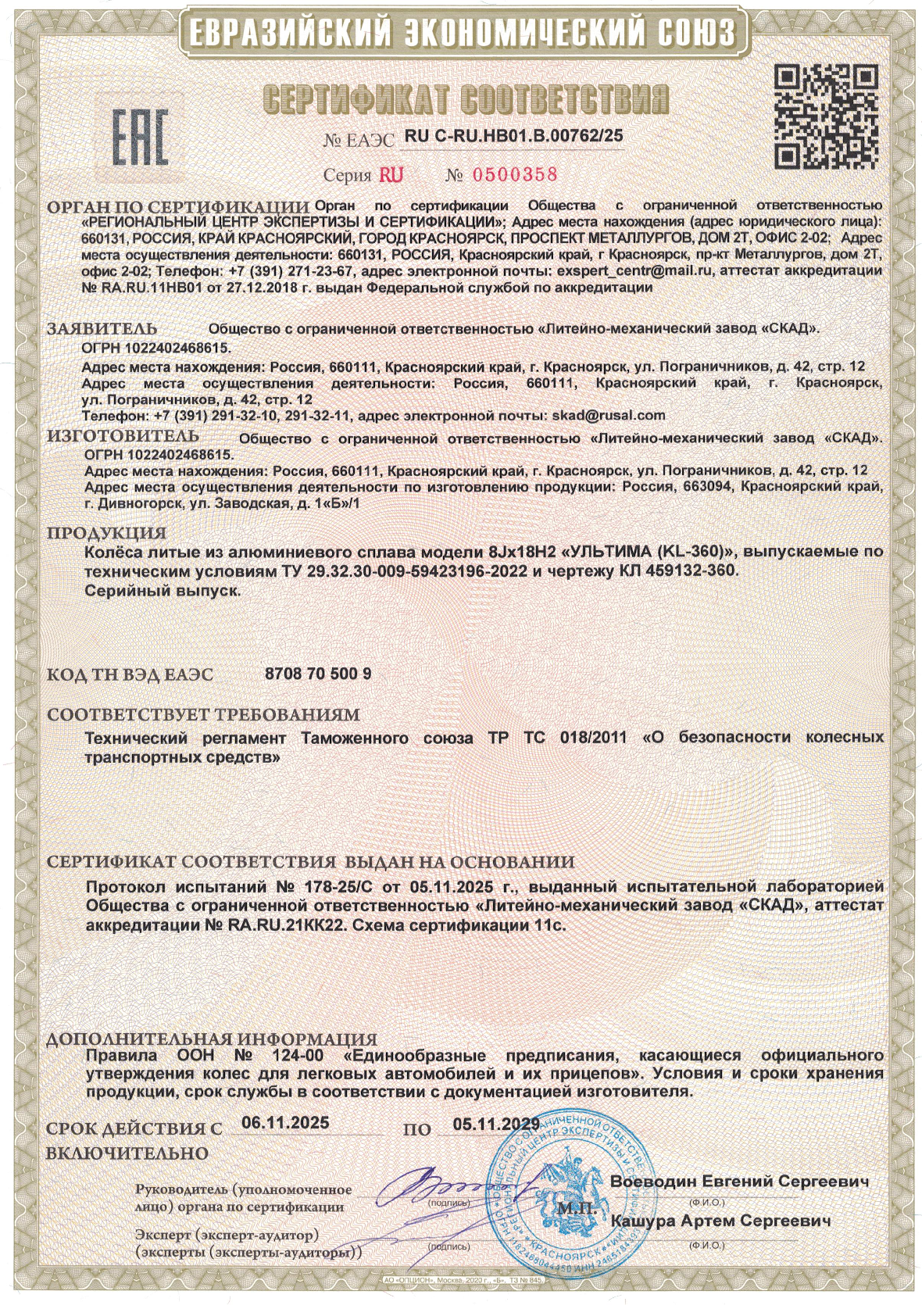Приобретайте диски SKAD УЛЬТИМА 8.000xR18 5x112 DIA66.6 ET44 напрямую от производителя из Сибири. Все представленные в ассортименте диски сертифицированы.